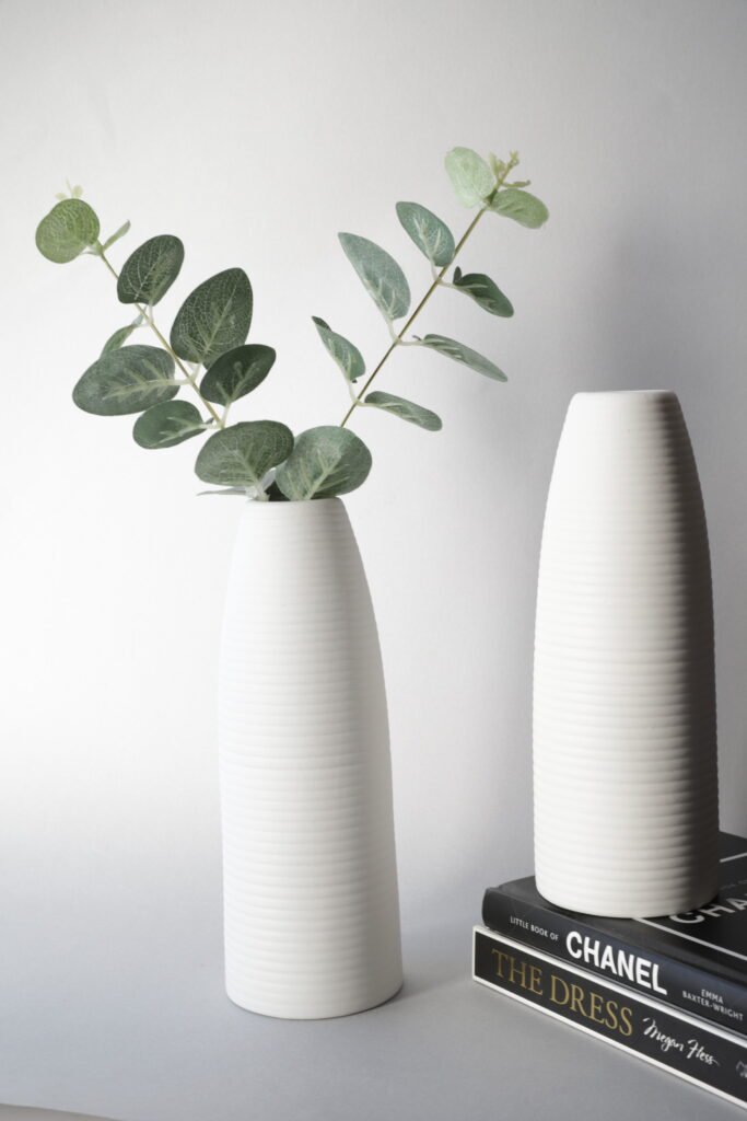 Their matte, artisanal texture brings a grounded, modern-luxe feel. Fill them with dried florals, pampas, or softly tinted roses.